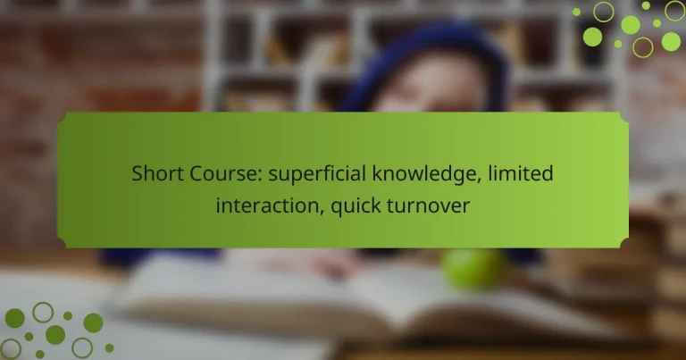 Short Course: superficial knowledge, limited interaction, quick turnover
