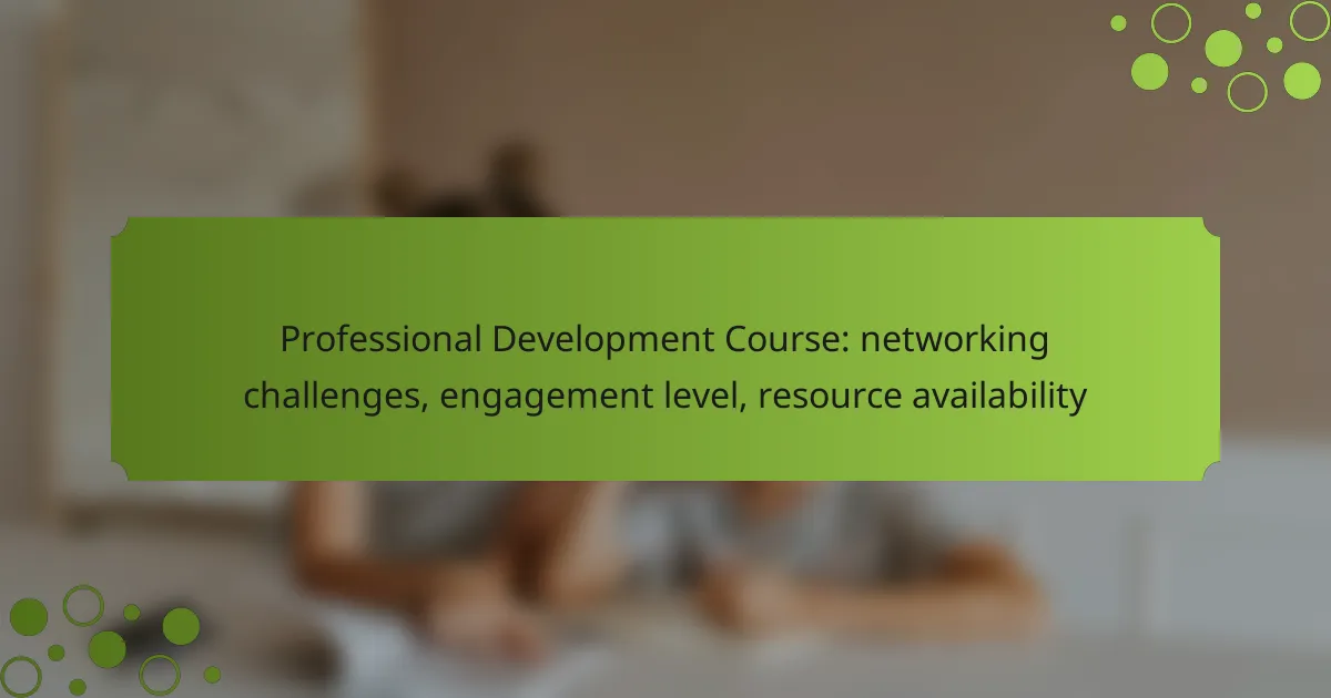 In professional development courses, overcoming networking challenges is essential for building meaningful connections and enhancing engagement. By actively utilizing available resources and participating in interactive elements, participants can significantly improve their networking experience and overall satisfaction. Access to relevant materials and mentorship further supports effective learning and professional growth.